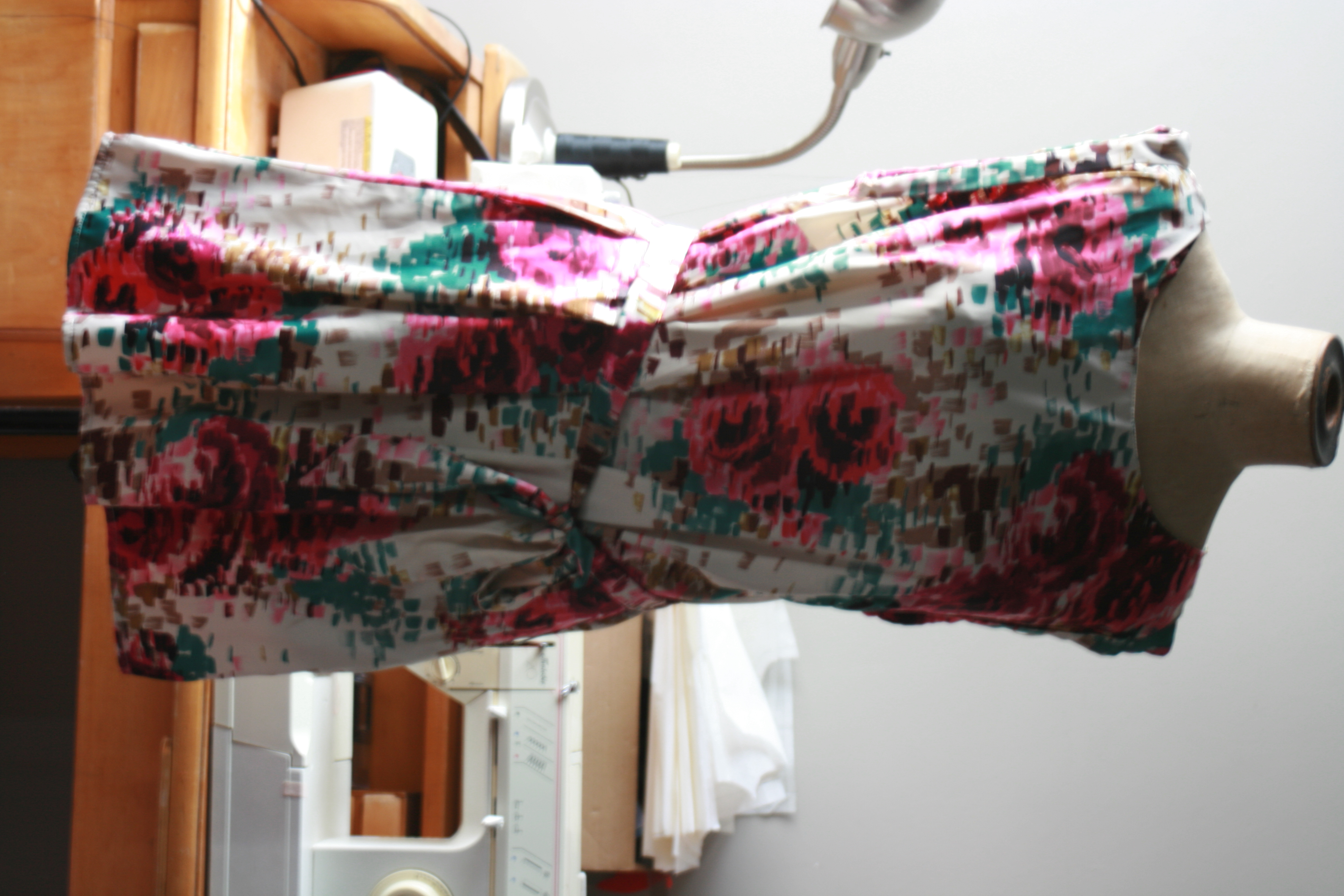 I want to use the back finish of the slit in the front. I cut the hem in 2 equal pieces. They are pleated and sewn on just below the waistband. Not that easy to stitch but with some patience and good needles…